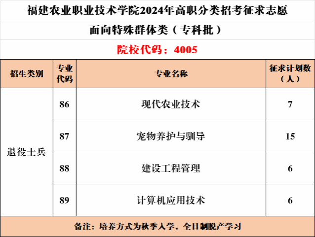 经福建省教育考试院2024年高职分类招考常规批投档,我校目前尚有34个招生计划进入征求志愿。(分专业招生计划以省教育考试院公布为准)