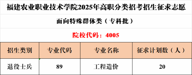 经福建省教育考试院2025年高职分类招考常规批投档,我校目前尚有20个招生计划进入征求志愿。(分专业招生计划以省教育考试院公布为准)