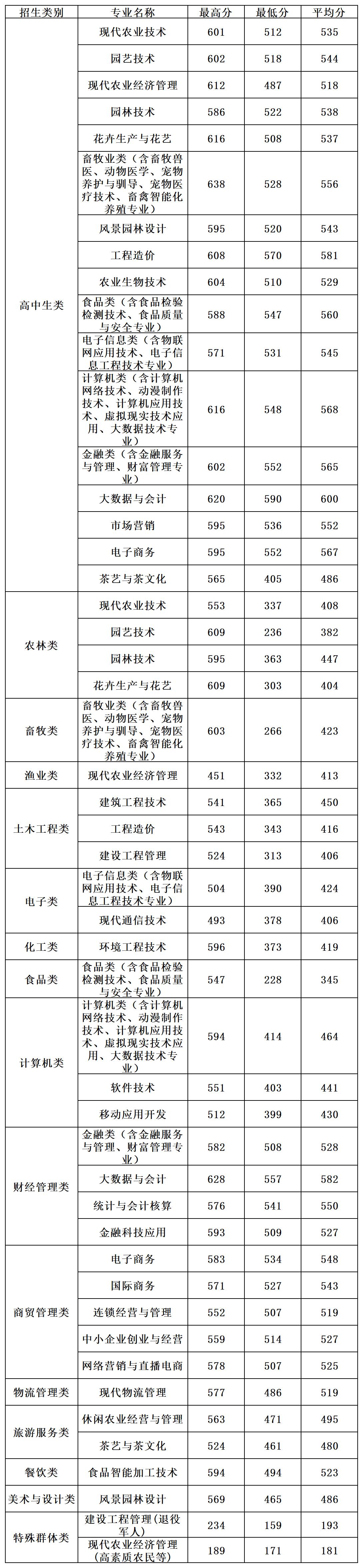 2022年高职分类招考录取分数线
