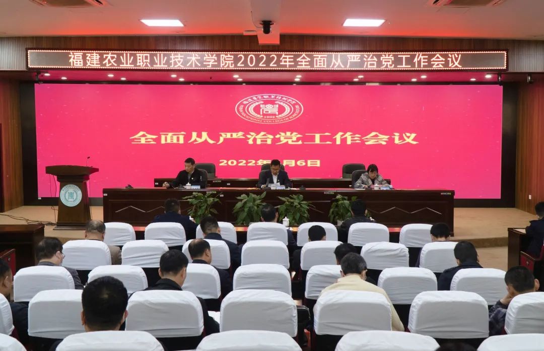 2022年4月6日,2022年全面从严治党工作会议在闽台楼二楼学术报告厅召开。会议总结了2021年全面从严治党工作,并对2022年工作作了部署。学院党委书记杨振坦作了讲话,院长陈玲主持会议。