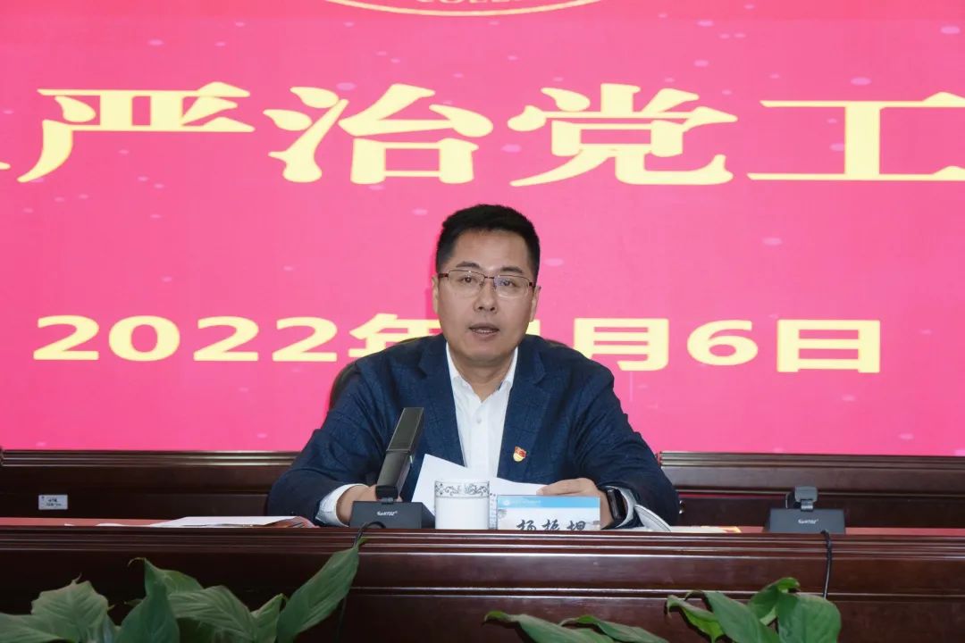 为推进学院2022年全面从严治党工作,杨振坦书记指出,一要坚持以政治建设为统领,深化对“两个确立”决定性意义的领悟,坚决做到“两个维护”;二要坚持把思想建设作为基础性建设,努力营造风清气正、健康向上的校园生态;三要持续深化组织建设,加强对干部队伍的培育管理,不断增强党组织的凝聚力和向心力;四要加强作风建设和纪律建设,健全完善监督体系,坚持不懈把全面从严治党向纵深推进;五要树牢安全底线思维,抓好常态化疫情防控和平安校园建设,全力维护校园安全稳定。