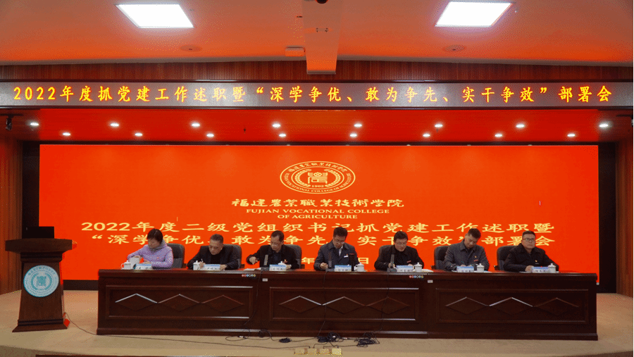 2月10日下午,学院在闽台楼二楼学术报告厅召开2022年度二级党组织书记抓基层党建述职暨“深学争优、敢为争先、实干争效”行动动员部署会,学院党委委员、中层干部、党员教师代表参加了会议。会议由党委副书记王振亮主持。