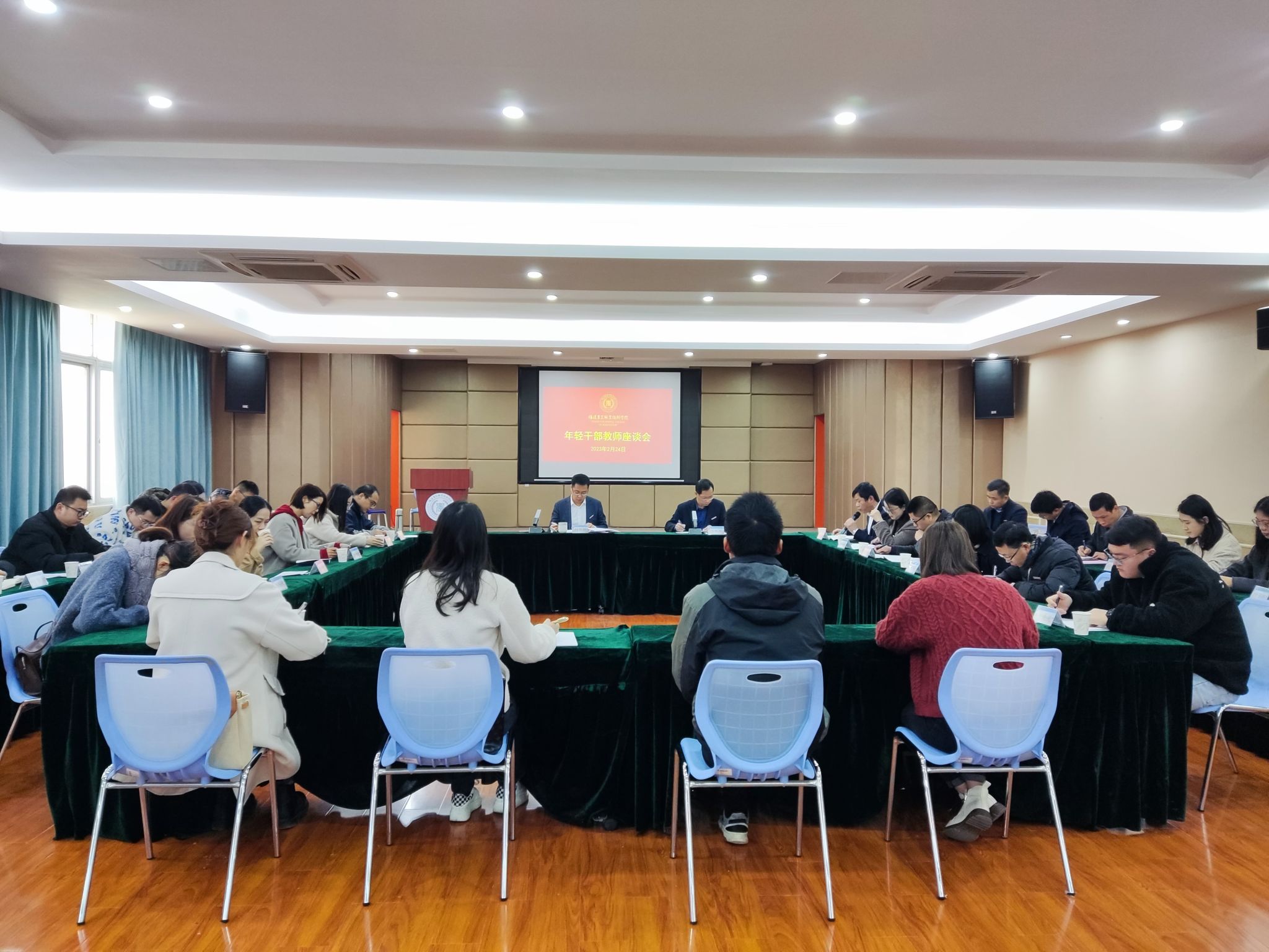 2月24日上午,学院在创业大讲堂召开主题为“发扬‘三争’精神,争当高质量发展排头兵--学习贯彻党的二十大精神”年轻干部教师座谈会。学院党委杨振坦书记、党委王振亮副书记、相关职能部门负责人以及来自学院各单位的30多名年轻干部教师代表参加了座谈会。座谈会由王振亮副书记主持。会议的主题为:发扬“三争”精神,争当高质量发展排头兵--学习贯彻党的二十大精神。