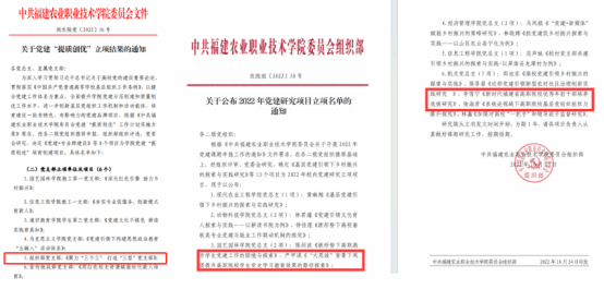 二是强业务,创突出党建业绩。结合组织部门职责,加强学院基层党建工作的谋划,创新打造具有高职教育特点和学院办学特色的“1276党建工作模式”;进一步完善党建考核、评价、激励机制,推动健全“四位一体”组织工作体系,制定党建工作考核办法、党组织例会制度等制度,牵头建立党建考评标准,进一步强化基层党组织标准建设指导。推动并支持学院党建“双带头人”“提质创优”完善“双带头人”创建工作。积极组织开展“一融双优”基层党建工作模式典型案例征集活动,形成《“四个立心”“双带头人”模式探索》等工作案例11项;组织申报全国第四批新时代高校党建示范创建和质量创优工作,择优推荐标杆院系建设单位2个、样板支部建设单位3个,经过教育厅遴选推荐3个单位参评全国样板支部。三是强赋能,创特色党建品牌。深入落实“政事企校”毗邻党建共建,联合周边村镇党组织开展党务干部能力培训,联合开展“七一”庆祝建党书画展等活动。深入落实“请党放心、强农有我”助力乡村振兴实施方案,《以新型职业农民培育为抓手 活化乡村振兴人才队伍建设》案例入选教育部职业发展中心《职业教育助力乡村振兴研究》课题典型案例;开展“我在乡间有亩田”党员志愿活动,与屏南县代溪镇签订协议并认领三亩田,进一步助推党建引领乡村振兴。