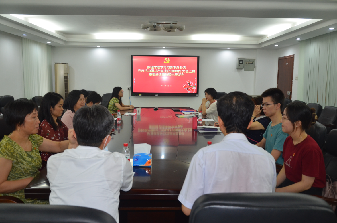 教师代表林小玲副教授说,今天是非常振奋人心的一天,是终生难忘的一天,今天是中国共产党成立100周年!100年的砥砺筑梦“七一路”,一路风雨一路歌、一路拼搏一路唱、一路曲折一路吟、一路坎坷一路颂、一路跋涉一路咏、一路凯歌一路舞。中国共产党人始终以初心为桨、借时代之舟、化使命成帆,在全面建成小康、铆足劲战胜疫情、织民生保护网、抓“六稳六保”的道路上砥砺前行。作为一名高校青年教师,在教书育人的道路上仍然任重道远,仍需要不忘初心,牢记使命,仍需要在新征程上继续不懈奋斗,为党和国家培养更多的优秀护理人才。