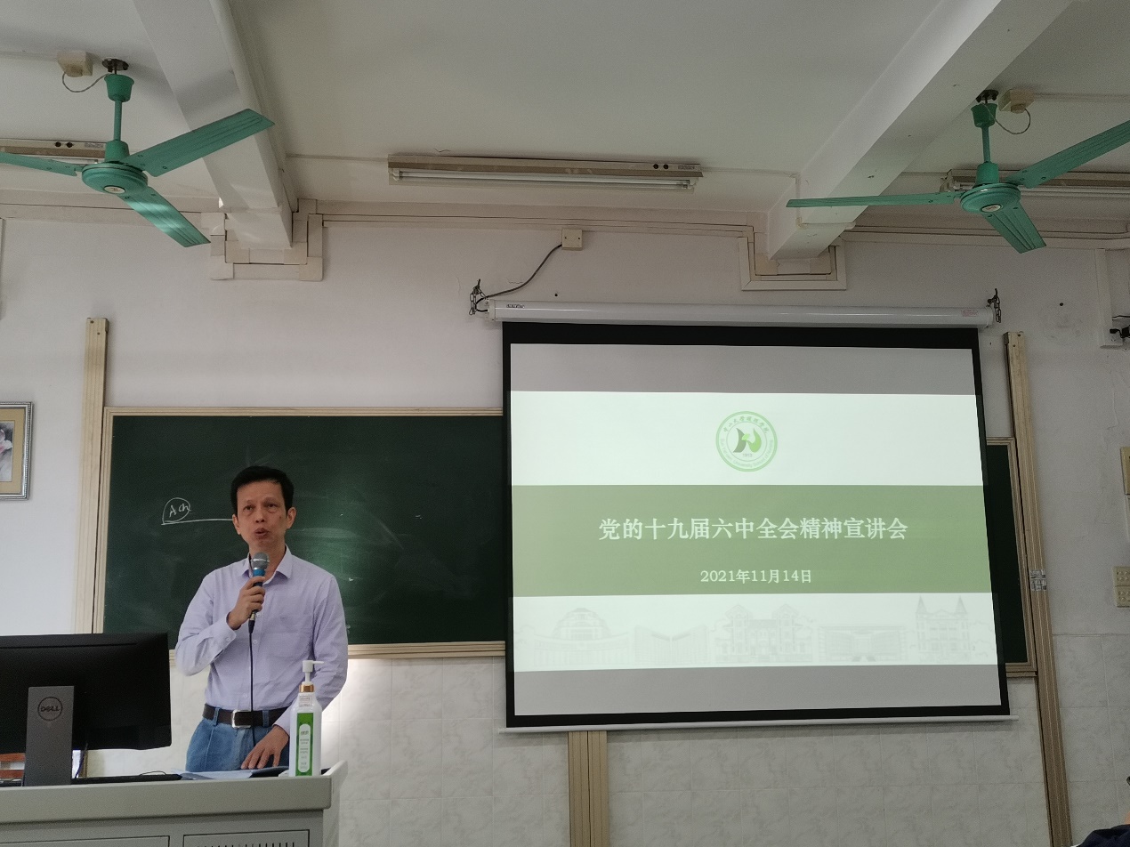 为全面系统学习领会党的十九届六中全会精神的丰富内涵与核心要义,牢牢把握正确方向导向,推动党史学习教育深化拓展,11月14日上午,BV伟德官方网站在学院620课室召开党的十九届六中全会精神宣讲会。学院党委书记陈昌龄、副书记李文敏、学工办主任何笑霞以及学院全体研究生共140余人参加了会议。宣讲会由学工办主任何笑霞主持。