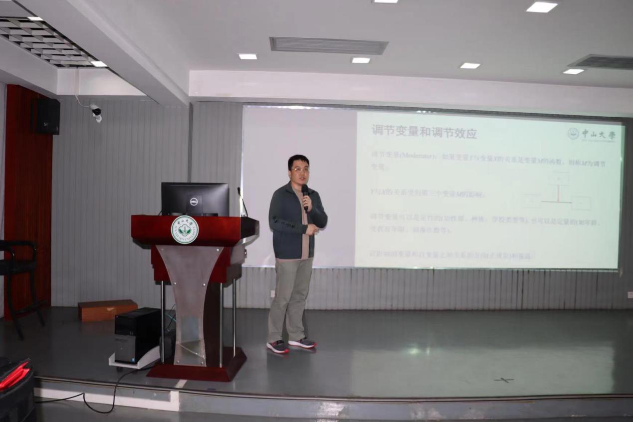 本次讲座中,潘俊豪教授主要为我们介绍了中介效应、调节效应分析及其应用,包括:(1)阐述了中介变量和中介效应的概念,并以路线图的形式介绍了最新的中介分析流程;(2)介绍了调节变量和调节效应的概念,并讲解了调节效应和交互效应的联系和区别;(3)从边界问题和机制问题方面进行中介分析和调节分析的比较,接着分别举例说明中介分析和调节分析的方法和特点;(4)通过实证研究讲解了带调节的中介分析、纵向中介分析中的交叉滞后模型和潜变量增长模型、多水平模型中的跨层调节分析和带调节的中介分析;(5)从概念、特点、数据分析方法及在各类学科中的应用等方面介绍了密集追踪数据的研究方法。