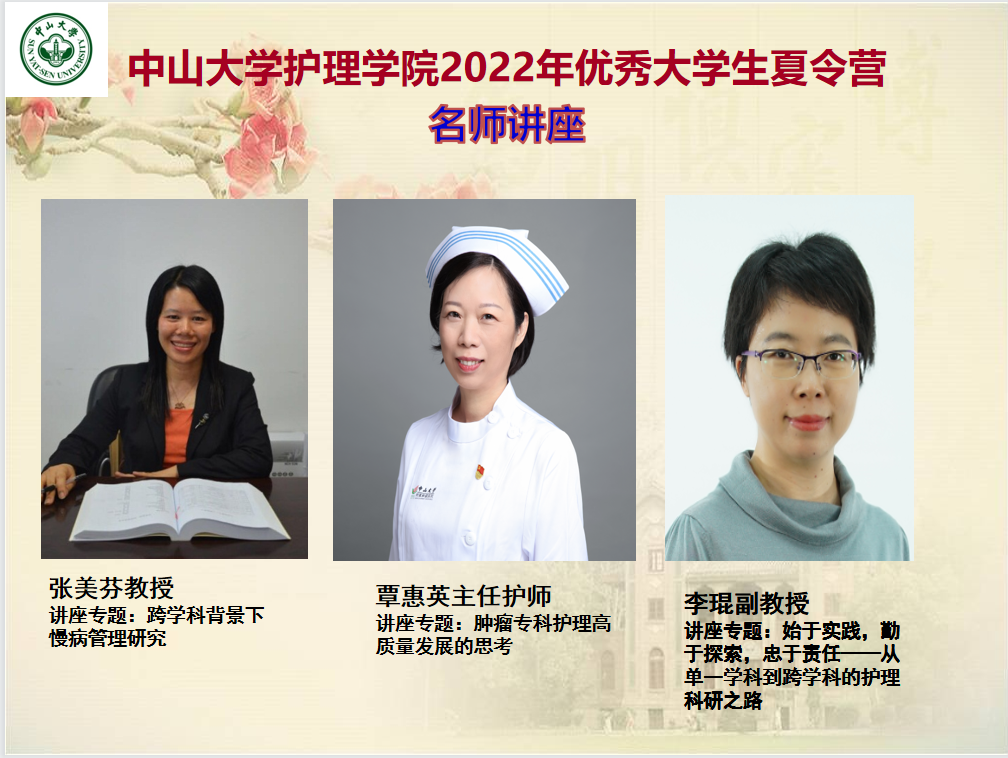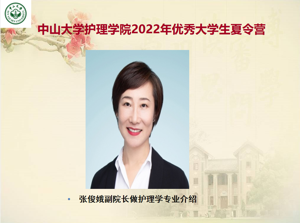 本次夏令营为期4天(7月12~15日)。夏令营期间,我院为同学们组织了护理学专业特色介绍、名师讲座等丰富的活动内容。首先由张俊娥副院长介绍了学校和学院的概况,并重点介绍了BV伟德官方网站护理学科的研究方向、师资队伍和研究生教育特色等,同时与学员分享了近年来的BV伟德官方网站护理学科建设成果以及我院研究生的风采等,并在线上给营员一一答疑。