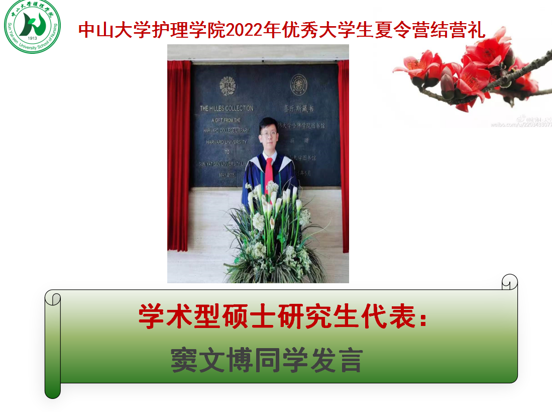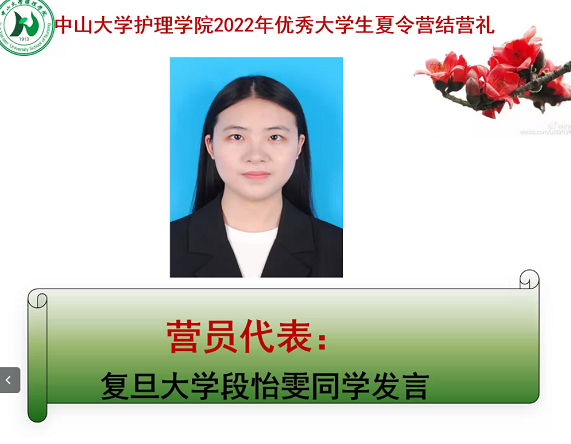 最后由张俊娥副院长作总结性发言。张俊娥副院长感谢各位同学的热情参与,高度肯定了各位营员在活动过程展现出的积极向上的精神风貌,在各个环节,同学们都展示了优秀的综合能力和素质!欢迎同学们选择我院攻读研究生。她勉励同学们无论今后在哪里工作和学习,都要记得为护理事业和人民的健康贡献自己的力量。她说,BV伟德官方网站2022年优秀大学生夏令营圆满落下了帷幕,但交流的平台已搭建,“一日中大缘,一生中大情”,希望同学们记住和中大的这个缘分,记住曾和中大有个美好的约定!