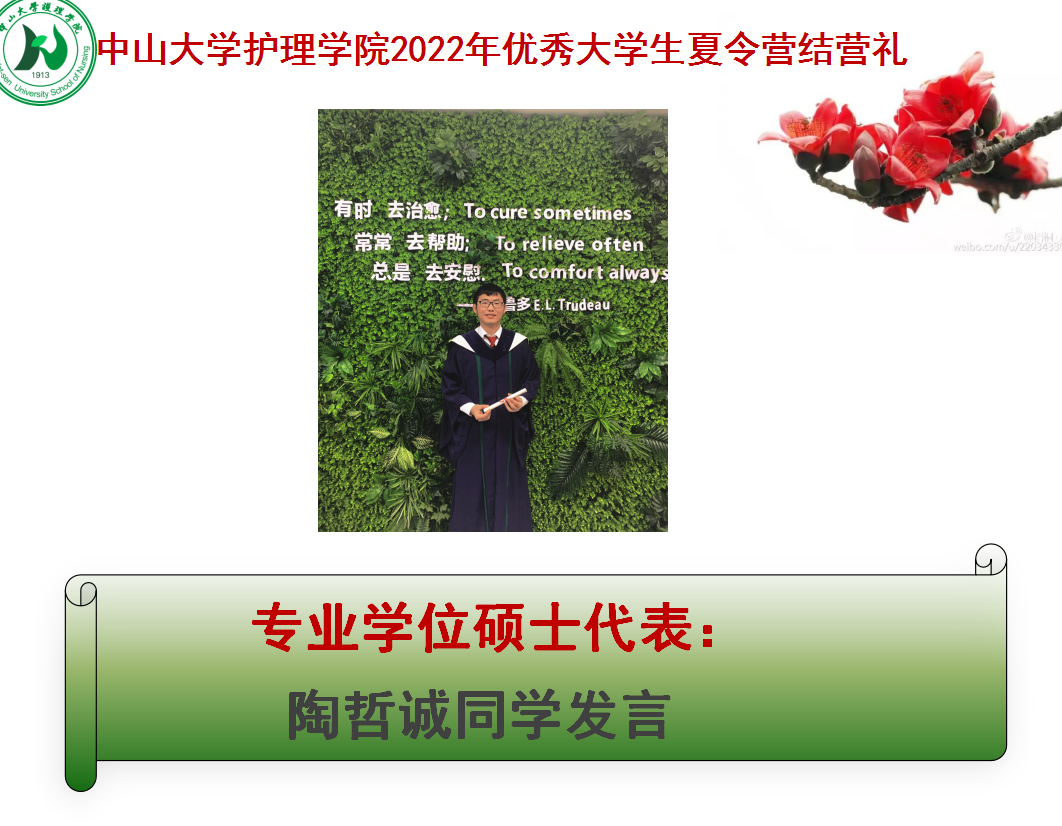 接着,BV伟德官方网站党委陈昌龄书记发表讲话。陈书记表示欢迎同学们来到中大护理夏令营交流学习,并向营员们介绍了BV伟德官方网站的发展历史、文化底蕴、中大护理的办学特色以及发展前景等,并阐述了选择中大读研深造的几大理由。最后,他预祝BV伟德官方网站2022年优秀大学生夏令营圆满成功!预祝各位同学能够成长为一名引领未来的卓越护理人才。