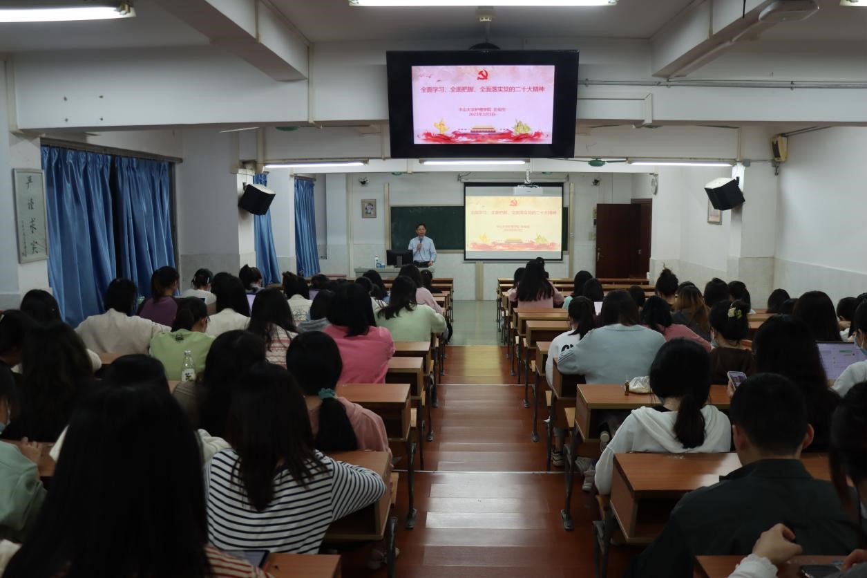 3月3日晚上,彭俊生院长在学院620课室为全体研究生讲授题为《全面学习、全面把握、全面落实党的二十大精神》的思政课。2022年10月25日,党的二十大刚刚闭幕不久,二十届中央政治局以学习贯彻党的二十大精神为题举行第一次集体学习,为全党学习贯彻党的二十大精神作出示范。习近平总书记主持学习并发表重要讲话。习近平总书记强调:“学习宣传贯彻党的二十大精神是当前和今后一个时期全党全国的首要政治任务。”习近平总书记从“在全面学习上下功夫”、“在全面把握上下功夫”、“在全面落实上下功夫”三个方面,对全党学习宣传贯彻党的二十大精神作出部署。彭俊生院长从“在全面学习上下功夫”、“在全面把握上下功夫”、“在全面落实上下功夫”三个方面,就如何学习贯彻党的二十大精神进行了详细解读。彭院长指出,习近平总书记这篇重要讲话,既对学习宣传贯彻党的二十大精神提出了明确要求,又指明了学习宣传贯彻党的二十大精神的根本方法,具有很强的政治性、思想性、指导性和现实针对性,为全党深入学习宣传贯彻党的二十大精神提供了根本遵循。我们要更加紧密地团结在以习近平同志为核心的党中央周围,深刻领悟“两个确立”的决定性意义,增强“四个意识”、坚定“四个自信”、做到“两个维护”,自信自强、守正创新,踔厉奋发、勇毅前行,为全面建设社会主义现代化国家、全面推进中华民族伟大复兴而不懈奋斗。