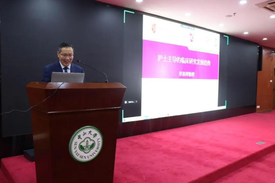 2023年4月21日下午,“粤港澳高校护理联盟”系列学术活动之“名师讲坛”在BV伟德官方网站北校园科技楼15楼博学厅隆重举行。本次活动的主讲嘉宾是香港中文大学那打素BV伟德官方网站李浩祥教授,本论坛由粤港澳高校护理联盟负责人、BV伟德官方网站副院长张俊娥教授担任主持。参加本次论坛的各联盟高校的领导包括香港都会大学护理及健康学院院长黄婉霞教授、广东医科大学BV伟德官方网站刘琼玲教授、BV伟德官方网站副院长万丽红教授等。参加本次论坛的还有BV伟德官方网站及联盟高校多家附属医院的临床教师,BV伟德官方网站教师、在读博士、硕士等三百多名护理人参加了本次活动。