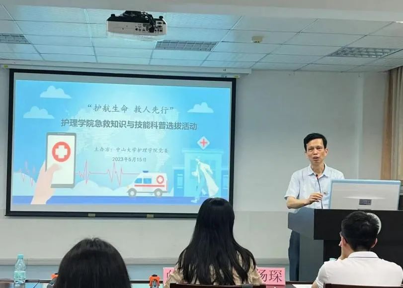 为推动学习贯彻习近平新时代中国特色社会主义思想主题教育走深走实,增强学生党员急救实践本领和能力,选拔优秀人才为我院党委“急救知识进校园、进社区、进企业”的“三进”品牌活动储备师资力量,5月15日晚上,由BV伟德官方网站党委主办、学院团委与博士生党支部联合承办的“护航生命 救人先行”急救知识与技能选拔活动在学院二楼东讲学厅举行。BV伟德官方网站党委书记陈昌龄,学院原党委副书记、中山六院现任党委副书记、纪委书记李文敏,学院团委书记何笑霞出席了活动,赵娟娟副教授、曹希副教授、杨琛副教授、白杨助理教授出席并担任评委。