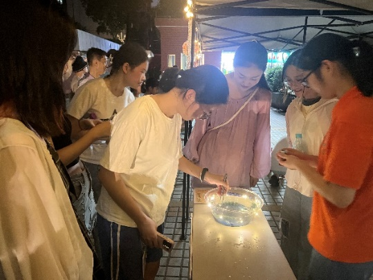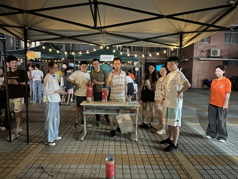 游园会现场设置了灯谜竞猜、神笔玉兔、玉盘DIY、海底捞月、玉兔套圈圈等游戏,还有丰富的奖品,吸引了200余名师生到场。在灯谜竞猜摊位前,大家边看边思考,时而眉头紧皱、时而嘴角上扬,核对谜底、加盖印章,在欢乐的气氛中感受中华文化的魅力。在玉兔套圈圈摊位前,大家用集章卡兑换相应数量的套圈,套圈时拼运气、比技巧,玩得不亦乐乎,套中礼物的同学开心跃起,旁边观看的同学也不禁欢呼鼓掌。