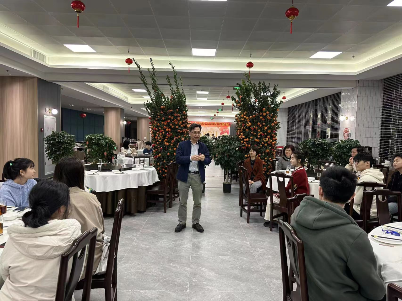 在聚餐现场,彭俊生院长首先致辞,他代表学院向留校同学们致以亲切的问候和节日的祝福,希望大家度过一个平安、欢乐、祥和而有意义的春节;他表示很多同学能够利用假期继续科研学习,以学业为主,以学校为家,值得点赞;他希望同学们好好体验广州春节的同时,能够积极主动地给家里父母打电话,报声平安,也转达学院对他们的节日祝福。