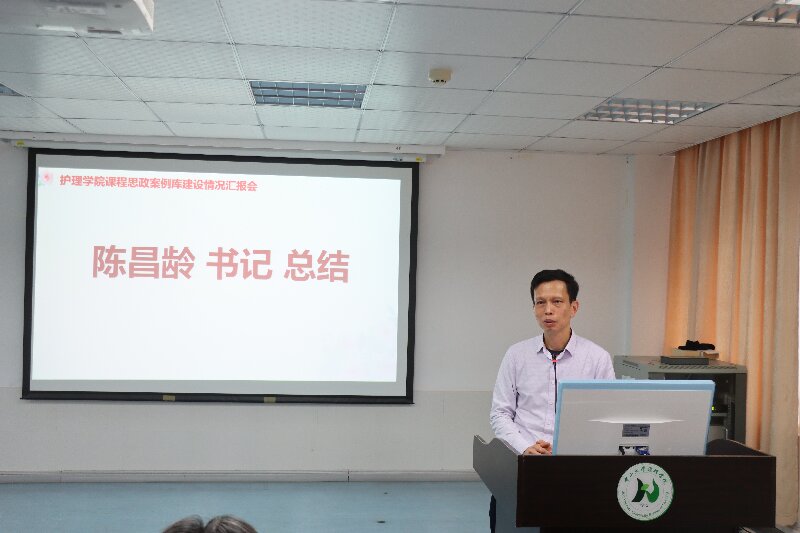 最后,学院党委陈昌龄书记进行了总结,他指出,建设有特色的护理学类专业课程思政案例库是我院加强课程思政建设的重要举措,要充分发挥学院文化的特色和医科专业优势,传承精华,守正创新,形成具有BV伟德官方网站护理特色的优秀教学案例。陈昌龄书记强调,课程思政要真正取得成效,广大教师既要“言传”,更要“身教”。为此,必须不断加强自身师德涵养培育,坚持师德师风第一标准,努力成长为立德修身、潜心治学、开拓创新的学生“引路人”和“大先生”。最后,陈昌龄书记对拨冗参加今天汇报会的教务部和医学部医学教育处领导和嘉宾表示衷心感谢,并期待在大家的共同努力下,护理学专业课程思政案例库建设工作能不断取得新成效!