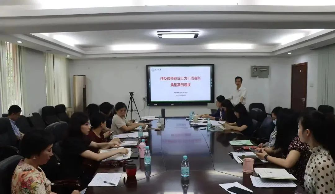 随后,根据党委教师工作部相关工作通知要求,陈昌龄对全体教职工开展师德警示教育。陈昌龄在宣讲了《新时代高校教师职业行为十项准则》《研究生导师指导行为准则》《BV伟德官方网站学术道德规范》有关内容之后,通报了教育部公开曝光的部分违反教师职业行为十项准则典型案例。陈昌龄强调,广大教师要从刚才通报的违反教师职业行为十项准则典型案例中深刻汲取教训,切实做到知敬畏、存戒惧、慎言行,不断强化教养学养,做学生为学、为事、为人的榜样。