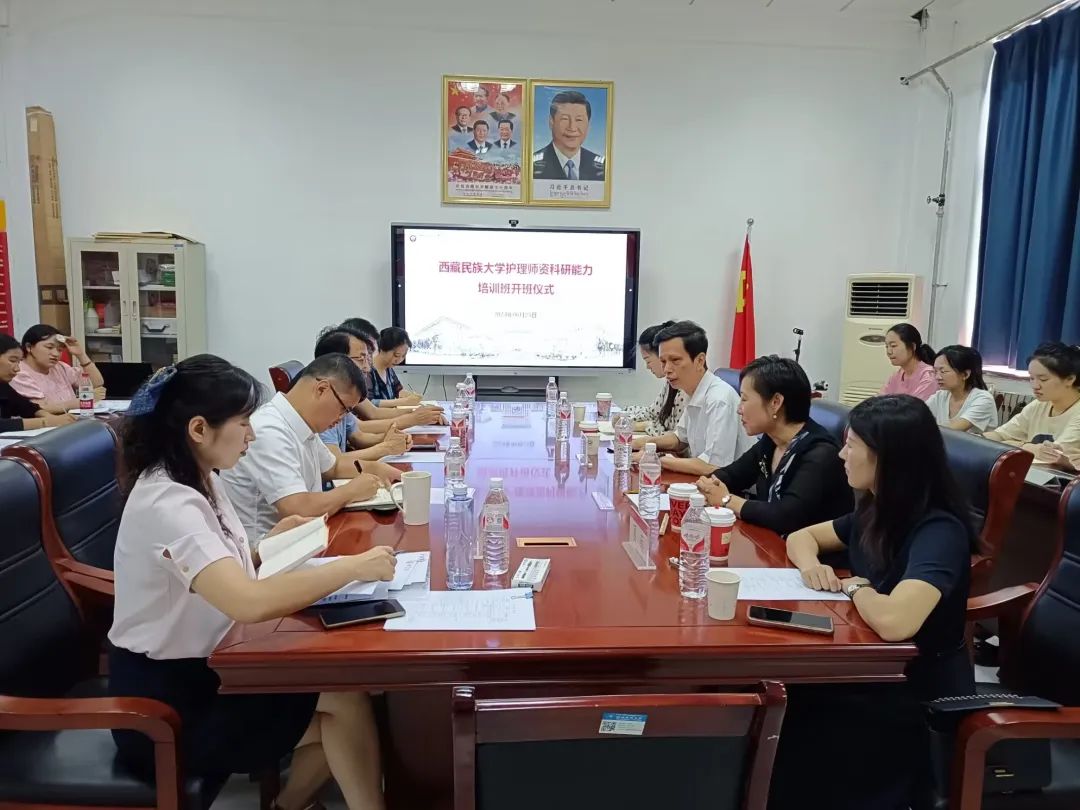 6月25日上午,西藏民族大学护理师资科研能力提升培训班开班仪式在西藏民族大学(下简称西藏民大)渭城校区第一教学楼1212会议室举行。我院党委书记陈昌龄、副院长张俊娥、副书记满意、儿科护理学教研室夏薇副教授,西藏民大医学部常务副主任、医学院党委书记、副院长周伟团,西藏民大医学院副院长信文君,西藏民大医学院副院长石镜明,西藏民大医学院护理系主任何瑛、副主任邵莉以及西藏民大医学院护理系专任教师约30余人参加仪式。开班仪式由西藏民大医学院护理系主任何瑛主持。
