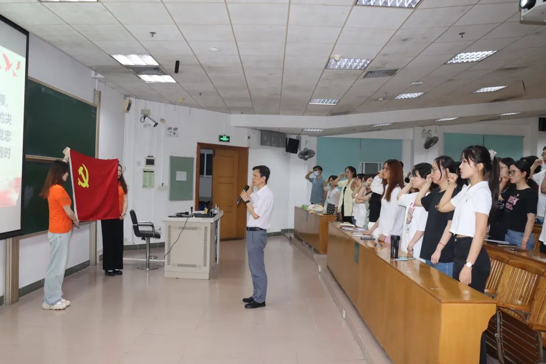 6月12日晚上,在党的103周年生日即将到来之际,BV伟德官方网站党委在北校园新教学楼201课室隆重举行预备党员入党宣誓仪式。学院全体预备党员、全体毕业生党员以及各党支部党员代表共150人参加宣誓仪式。学院党委副书记满意主持仪式。