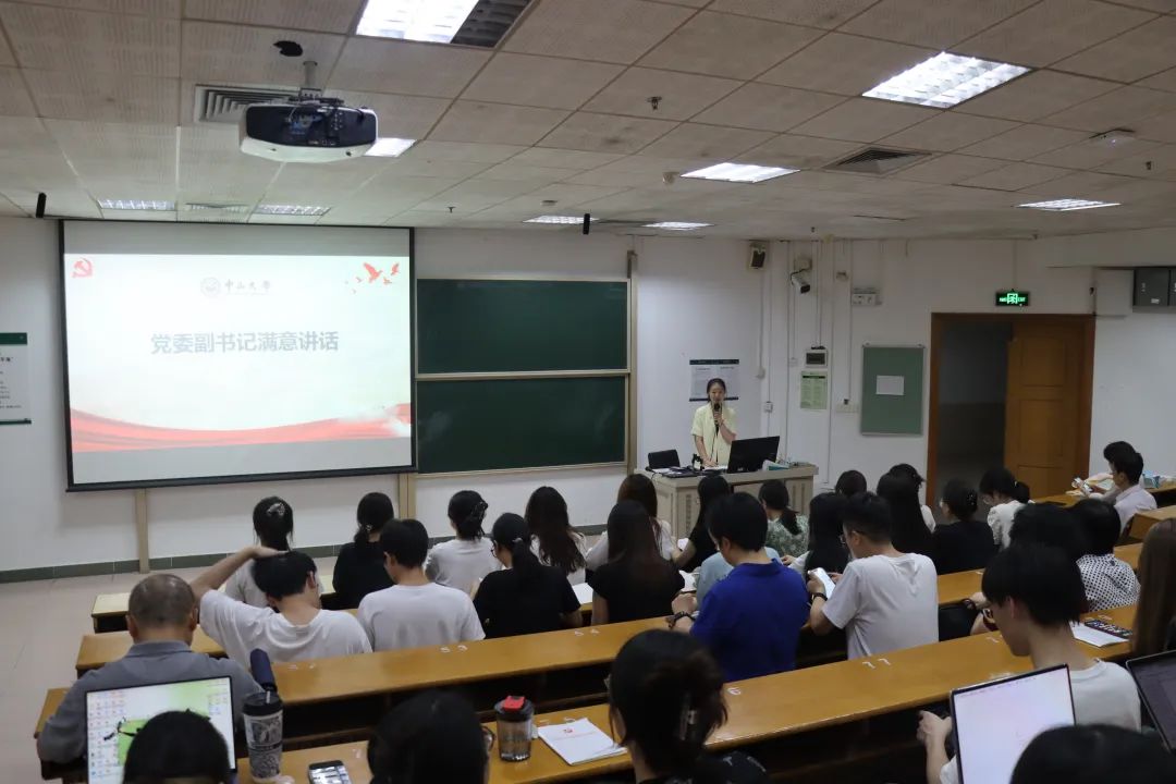 满意副书记代表学院党委发表讲话。她首先代表学院党委向全体预备党员表示热烈的祝贺。满意指出,按照党章的规定,预备党员必须面对党旗进行入党宣誓;入党宣誓,是党员政治生命开始的象征,是非常庄重、严肃的事情。党旗代表着党,誓词概括了党对党员的要求,也概括了党员对党组织和党的事业应承担的政治责任。满意强调,作为新时代的共产党员,希望大家牢记习近平总书记的谆谆教诲,在今后的学习生活和工作中始终做到:坚定理想信念,筑牢思想根基,坚定不移听党话、跟党走;奋发图强,练就过硬本领,德智体美劳全面发展,发挥党员先锋模范作用,彰显青年担当;打好群众基础,多为身边的同学办实事办好事,以实际行动践行全心全意为人民服务的初心使命,为党旗增光添彩,为党和人民的事业奋斗终身!