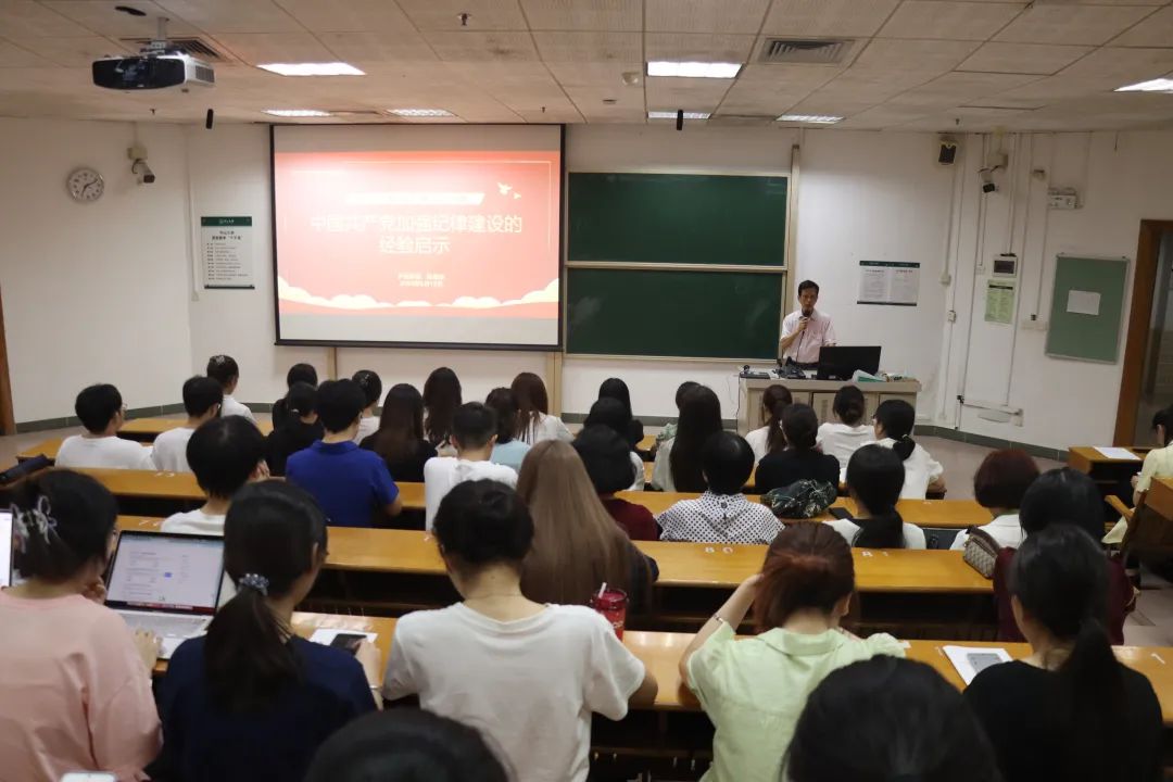 根据学校党委关于开展党纪学习教育的工作部署和学院党委的工作安排,宣誓仪式结束后,陈昌龄书记为全体党员讲授题为《中国共产党加强纪律建设的经验启示》的专题党课。
